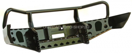 Бампер оснащен мощными упорами под реечный домкрат и буксирными проушинами для работы с рывковой или буксировочной стропой. Тщательно продуманная конструкция внутренних усилителей обеспечивают максимальную надежность бампера, стойкость к высоким нагрузкам и сильным ударам.