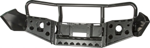 Черное порошковое покрытие защищает от коррозии в любых условиях эксплуатации и не боится самых агрессивных реагентов. Гарантия 3 года при отсутствии механических повреждений. При желании можно заказать бампер без покрытия и окрасить его в цвет автомобиля. Весь силовой обвес рассчитан на эксплуатацию в тяжелых условиях, он полностью сертифицирован, при установке никакого вмешательства в конструкцию автомобиля не требуется.