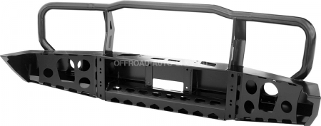Передний силовой бампер служит для защиты автомобиля на бездорожье и в городе. В случае контакта или легкого столкновения с препятствием в виде камней, бревен, пней, колей или незадачливых водителей, риск получить серьезные повреждения машины существенно уменьшается, а это очень важно в экспедициях и в повседневной жизни. Бампер без кенгурина весит меньше, чем бампер с кенгурином, он не только защитит, но и украсит внедорожник благодаря эффектному и элегантному дизайну.