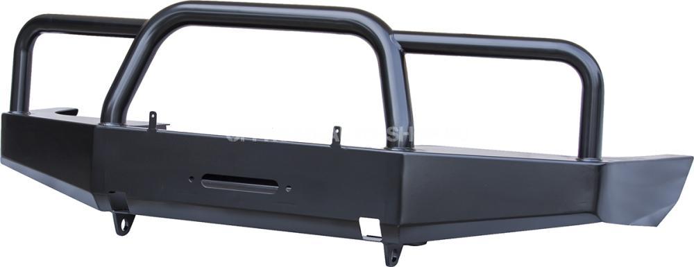 Передний силовой бампер с защитной дугой служит для защиты автомобиля на бездорожье и в городе. В случае контакта или легкого столкновения с препятствием в виде камней, бревен, пней, колей или незадачливых водителей, риск получить серьезные повреждения машины существенно уменьшается, а это очень важно в экспедициях и в повседневной жизни. Бампер с кенгурятником не только защитит, но и украсит внедорожник благодаря эффектному и элегантному дизайну.