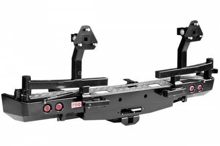 Задний силовой бампер надежно защитит кузов автомобиля на бездорожье или в городе в случае непредвиденных инцидентов. Бампер оборудован упорами под хай джек и буксирными проушинами для работы с рывковой или буксировочной стропой.