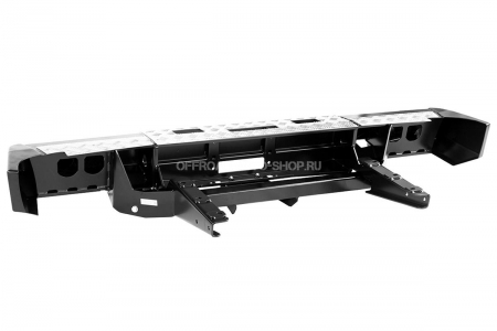 Задний силовой бампер надежно защитит кузов автомобиля на бездорожье или в городе в случае непредвиденных инцидентов. Бампер оборудован упорами под хай джек и буксирными проушинами для работы с рывковой или буксировочной стропой.