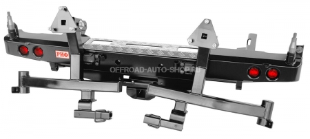 Задний силовой бампер надежно защитит кузов автомобиля на бездорожье или в городе в случае непредвиденных инцидентов. Бампер оборудован упорами под хай джек и буксирными проушинами для работы с рывковой или буксировочной стропой.