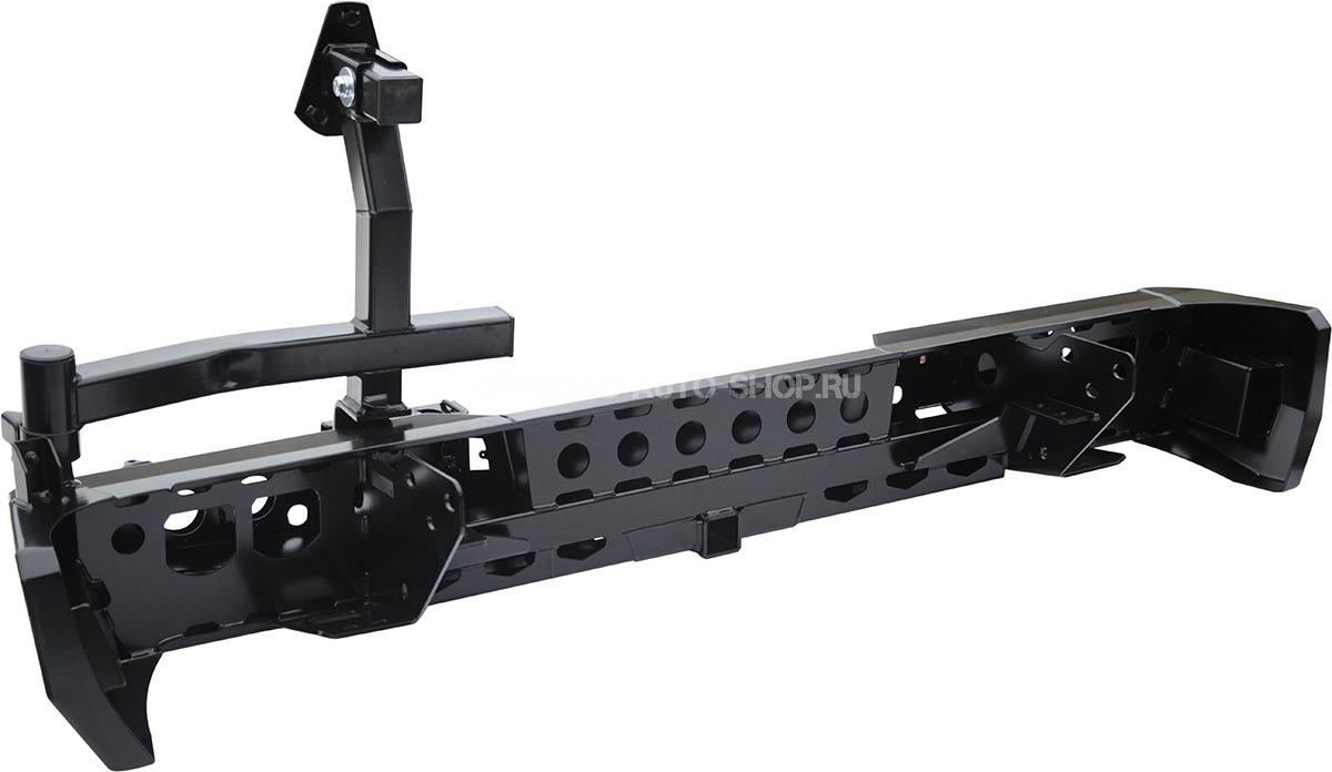 Задний силовой бампер надежно защитит кузов автомобиля на бездорожье или в городе в случае непредвиденных инцидентов. Бампер оборудован упорами под хай джек и буксирными проушинами для работы с рывковой или буксировочной стропой.