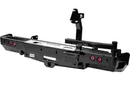 Задний силовой бампер надежно защитит кузов автомобиля на бездорожье или в городе в случае непредвиденных инцидентов. Бампер оборудован упорами под хай джек и буксирными проушинами для работы с рывковой или буксировочной стропой.