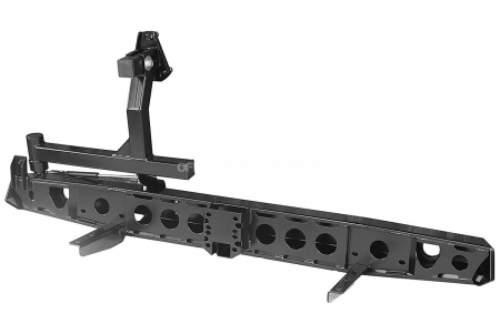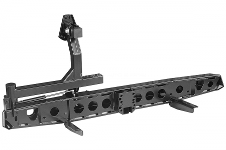 Задний силовой бампер надежно защитит кузов автомобиля на бездорожье или в городе в случае непредвиденных инцидентов. Бампер оборудован упорами под хай джек и буксирными проушинами для работы с рывковой или буксировочной стропой. Встроенный американский квадрат позволяет использовать любые съемные фаркопы, переходники, буксировочные устройства или съемные площадки для лебедки