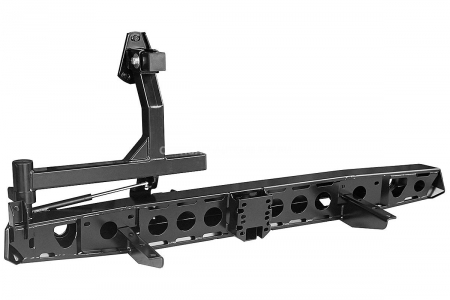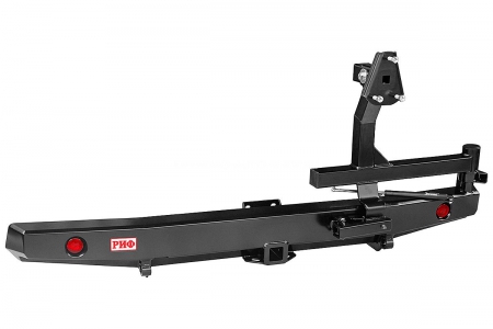 Задний силовой бампер надежно защитит кузов автомобиля на бездорожье или в городе в случае непредвиденных инцидентов. Бампер оборудован упорами под хай джек и буксирными проушинами для работы с рывковой или буксировочной стропой. Встроенный американский квадрат позволяет использовать любые съемные фаркопы, переходники, буксировочные устройства или съемные площадки для лебедки