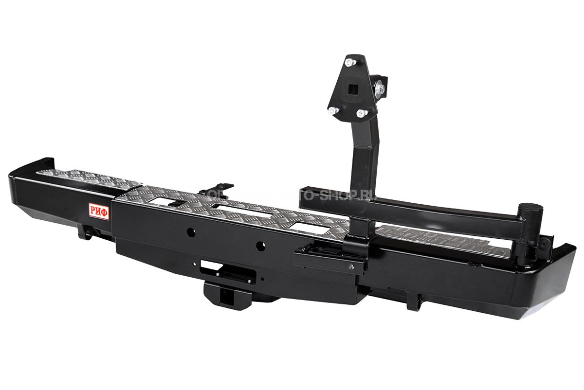 Задний силовой бампер надежно защитит кузов автомобиля на бездорожье или в городе в случае непредвиденных инцидентов. Бампер оборудован упорами под хай джек и буксирными проушинами для работы с рывковой или буксировочной стропой.