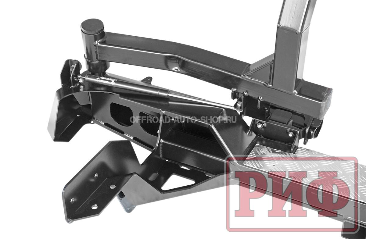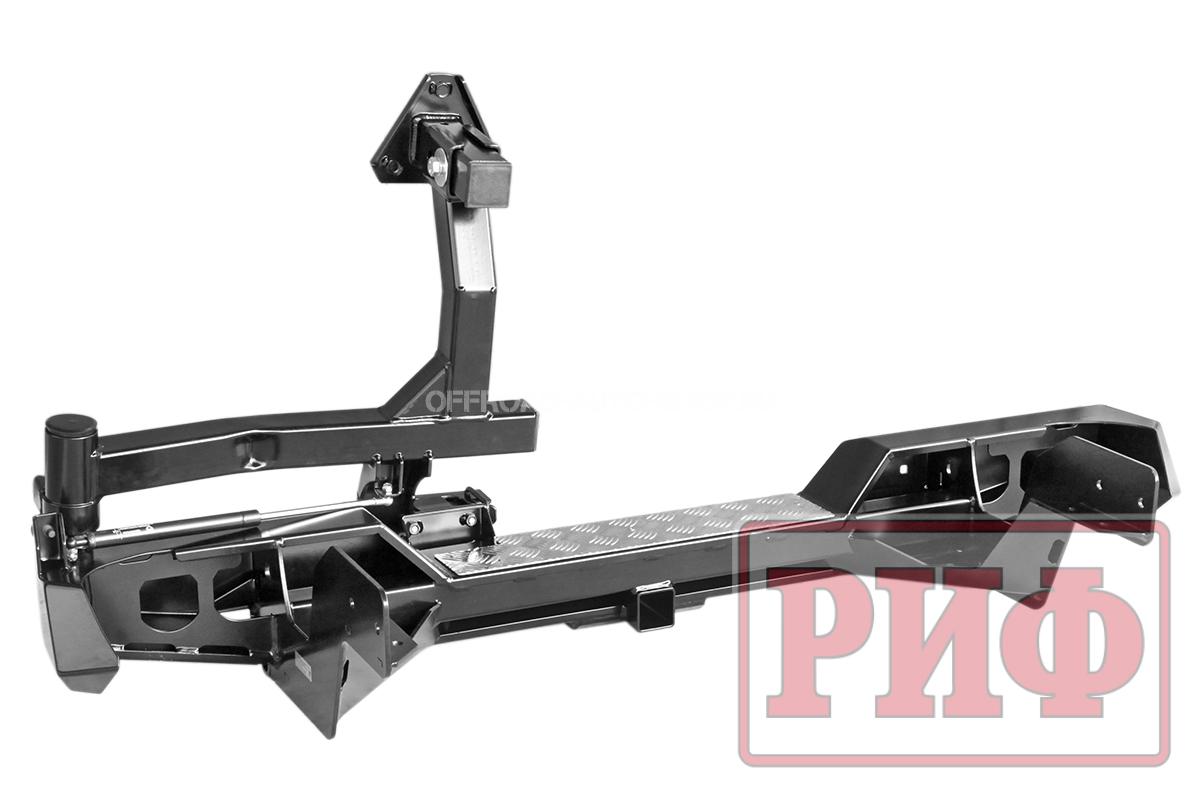 Встроенный американский 'квадрат' позволяет использовать любые съемные фаркопы, переходники, буксировочные устройства или съемные площадки для лебедки. Надежная калитка выдержит самое большое запасное колесо. Надежный фиксатор калитки удержит ее в закрытом состоянии на любой пересеченной местности, особо жесткая конструкция калитки рассчитана на тяжелую запаску большого размера.