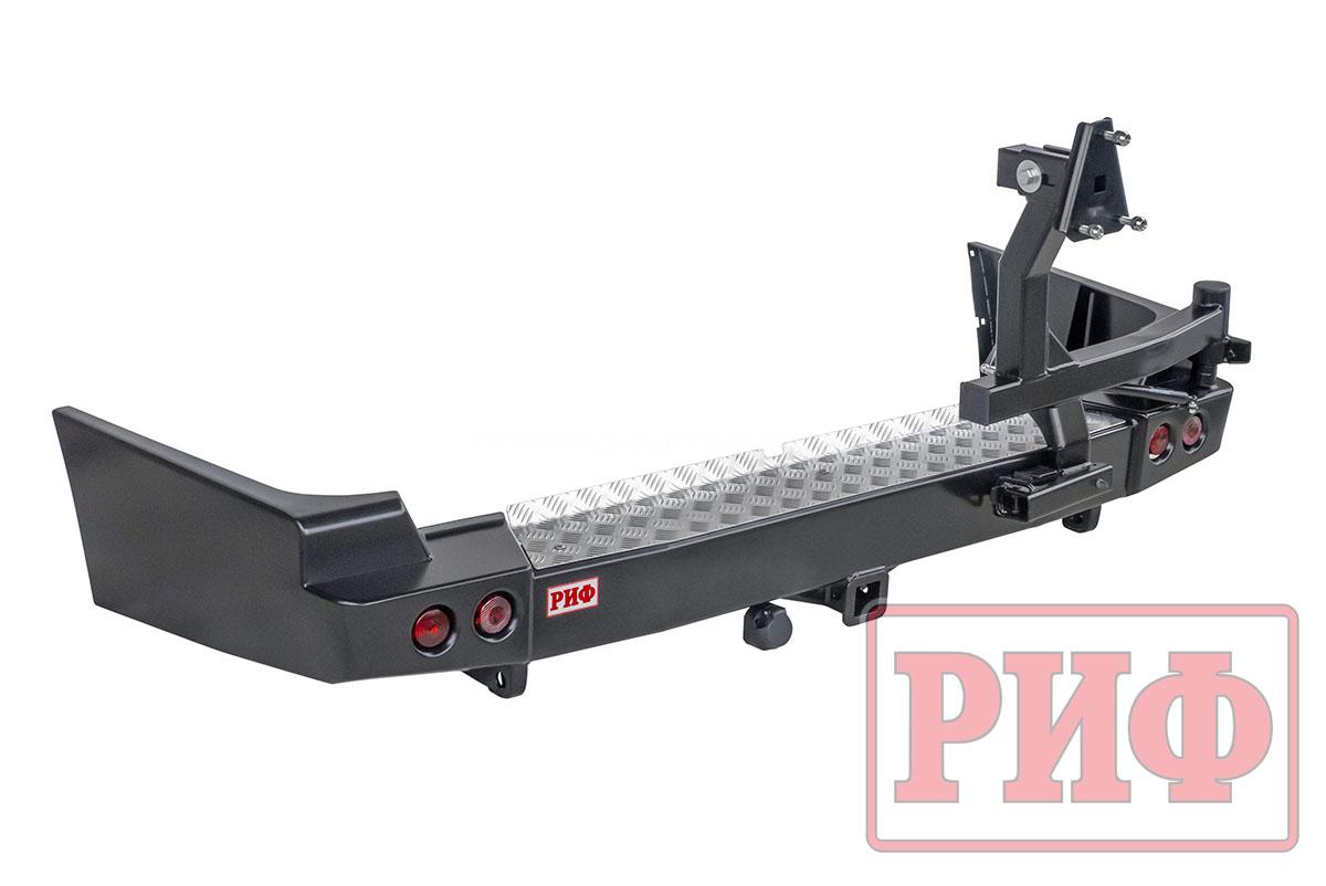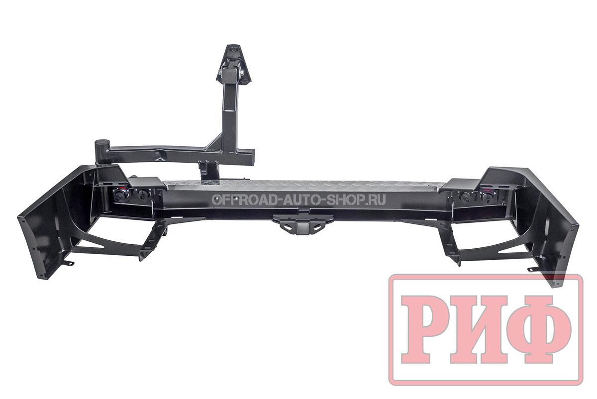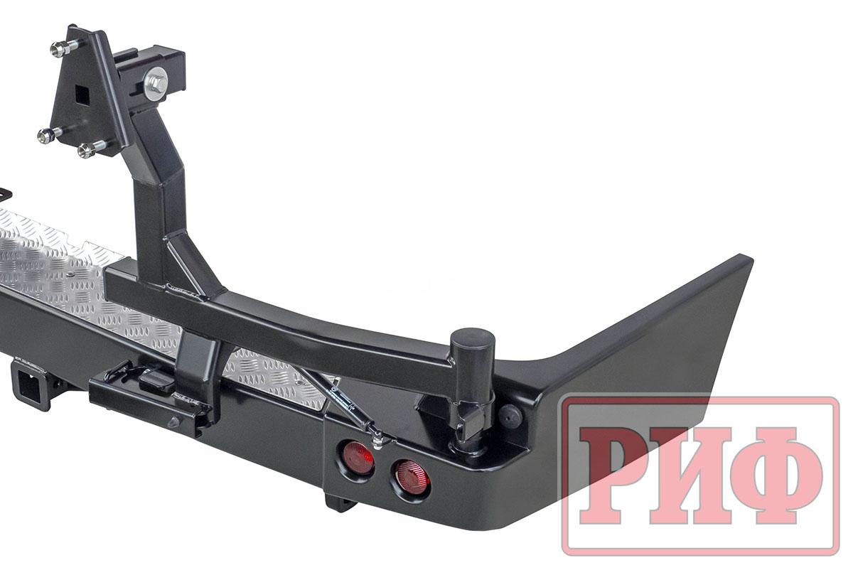Задний силовой бампер надежно защитит кузов автомобиля на бездорожье или в городе в случае непредвиденных инцидентов. Бампер оборудован упорами под хай джек и буксирными проушинами для работы с рывковой или буксировочной стропой.