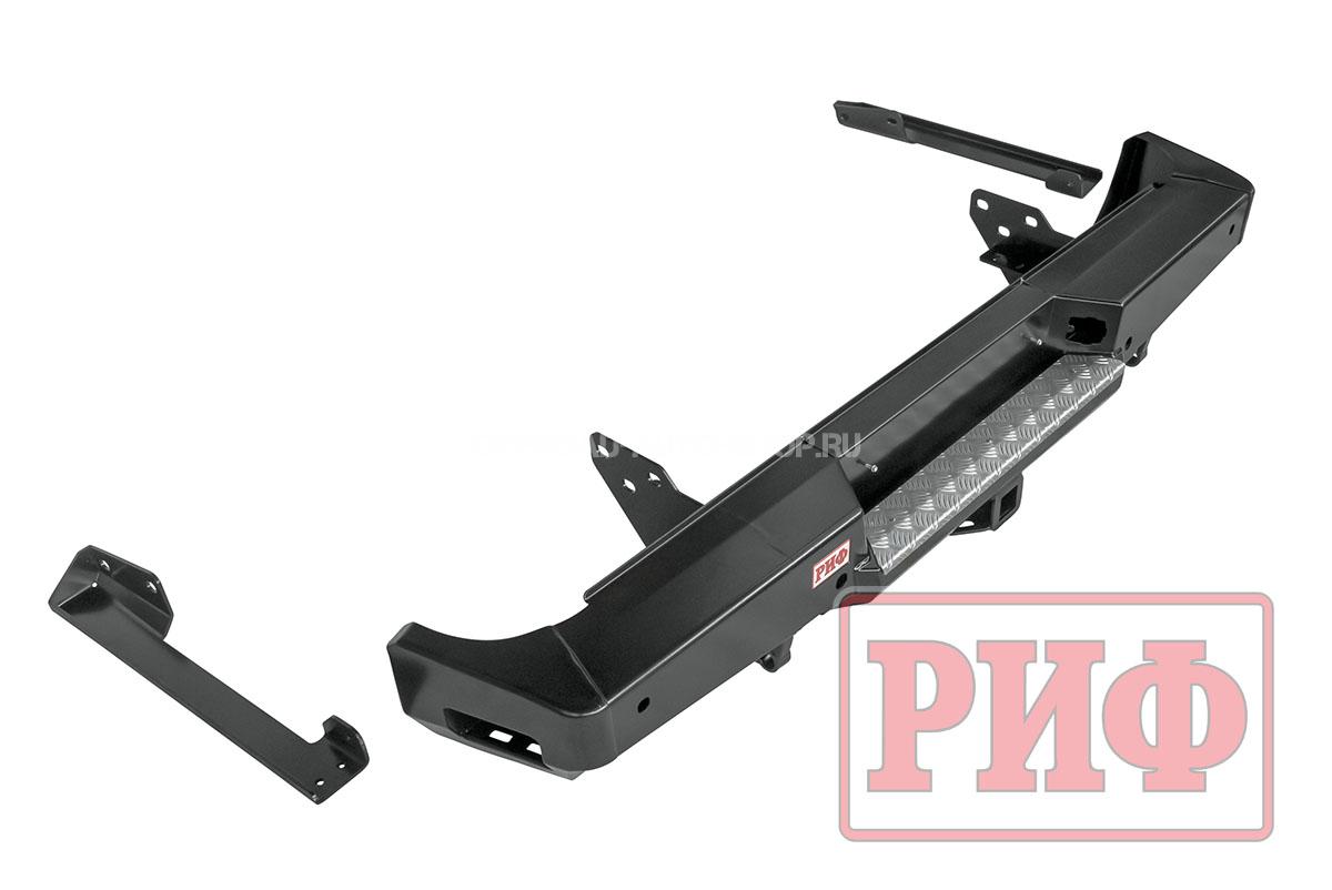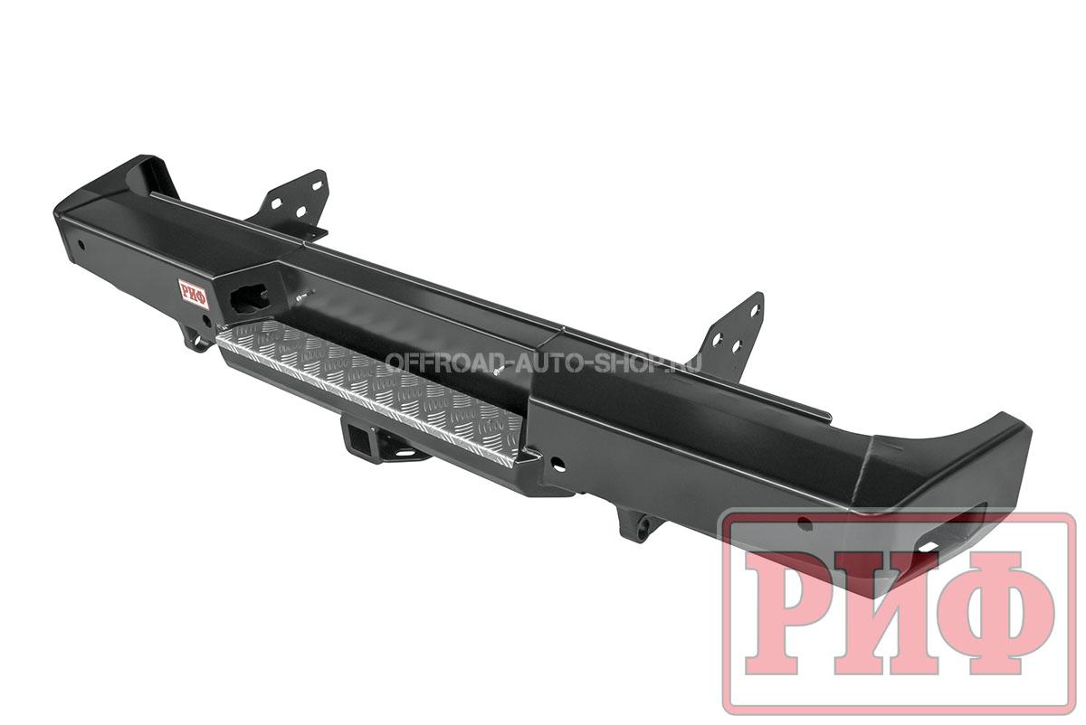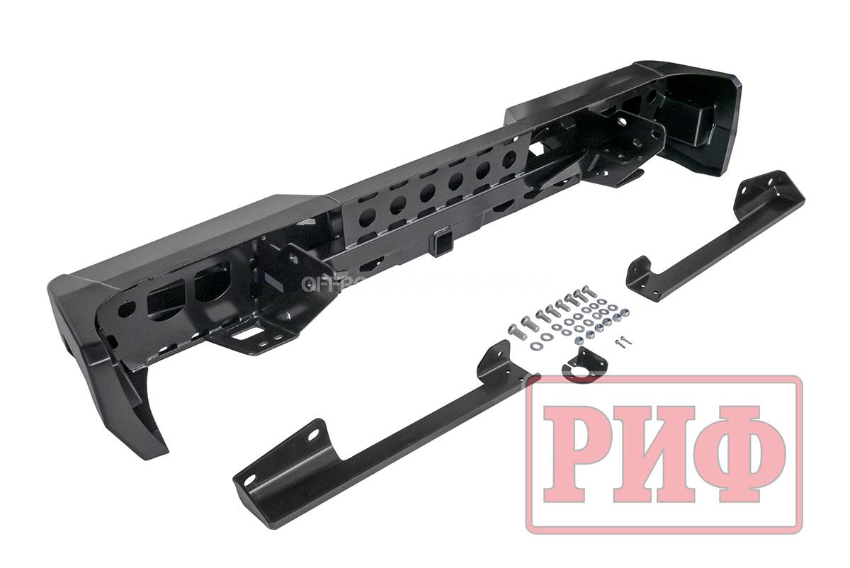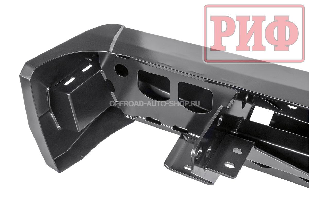 Задний силовой бампер надежно защитит кузов автомобиля на бездорожье или в городе в случае непредвиденных инцидентов. Бампер оборудован упорами под хай джек и буксирными проушинами для работы с рывковой или буксировочной стропой.
