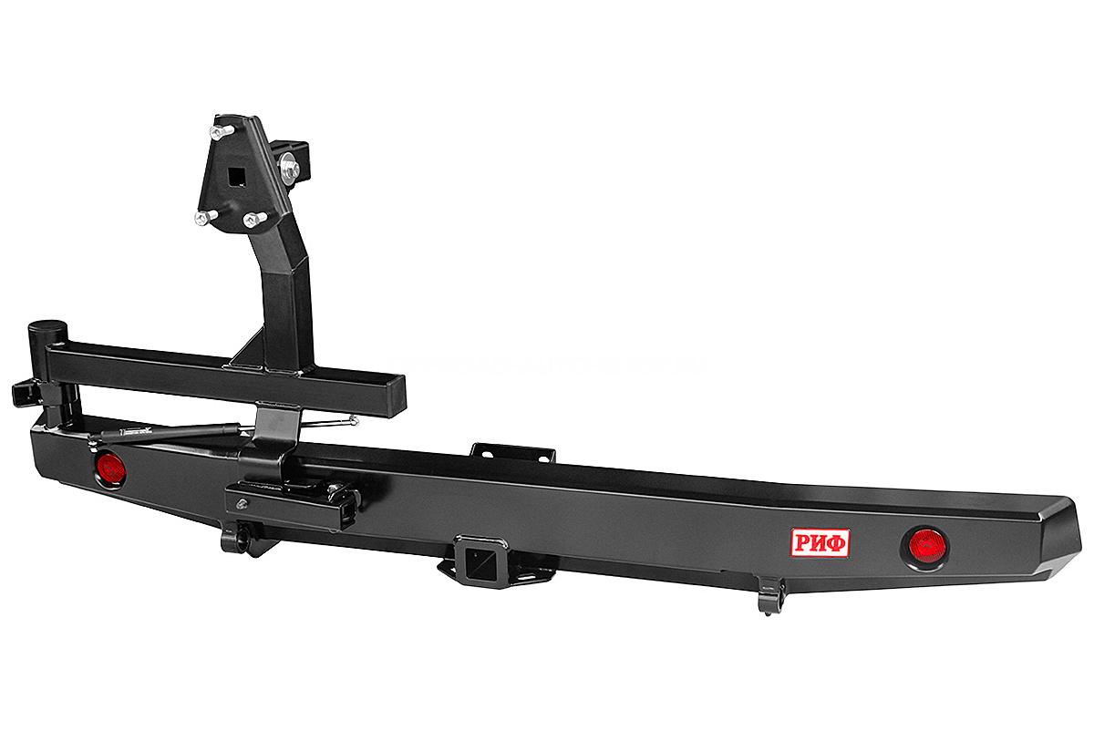 Задний силовой бампер надежно защитит кузов автомобиля на бездорожье или в городе в случае непредвиденных инцидентов. Бампер оборудован упорами под хай джек и буксирными проушинами для работы с рывковой или буксировочной стропой. Встроенный американский 'квадрат' позволяет использовать любые съемные фаркопы, переходники, буксировочные устройства или съемные площадки для лебедки