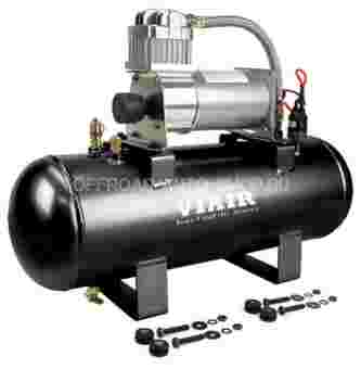 Автомобильный пневматический комплект Viair 20005 с компрессором 280С и ресивером в сборе. Объемом 2 галлона/7.5 литров и 5 входами для подключения в воздушную магистраль, установки датчиков и фитингов
