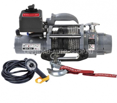 Лебедка электрическая COMEUP DV-6s со стандартным барабаном и синтетическим тросом, 12В. Макс. тяговое усилие - 2722 кг. Особенности: