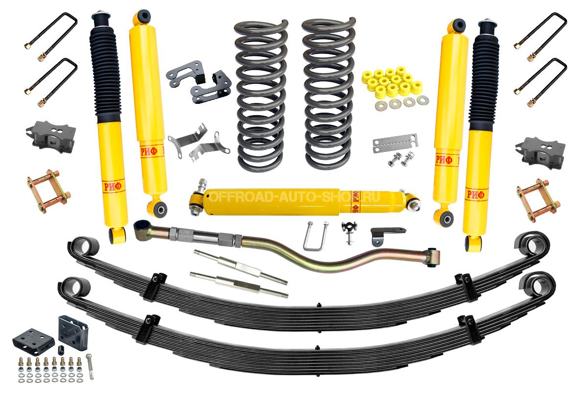 Все компоненты лифт-комплектов разработаны специально для эксплуатации внедорожника в тяжелых условиях на различных дорожных покрытиях. Рессоры, амортизаторы с технологией R-AIR и пружины не только компенсируют вес установленного на внедорожнике дополнительного оборудования (бамперов, порогов, дополнительных топливных баков, лебедок и прочего), но также существенно повышают грузоподъемность автомобиля. Удлиненные стремянки и серьги произведены из высококачественных материалов и имеют увеличенный запас прочности. Рессорные втулки изготовлены из полиуретана обладает высокой упругостью, износостойкостью и термоустойчивостью к высоким или низким температурам.