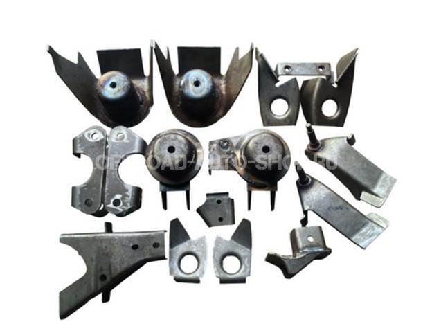 Данный комплект предназначен для переделки передней рессорной подвески автомобилей УАЗ на пружинную под установку военного моста.