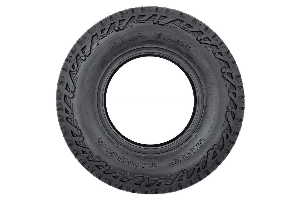 Шины Mickey Thompson Baja Boss A/T обладают асимметричным рисунком протектора, обеспечивающим оптимальное сочетание низкого уровня шума и мощного сцепления на мокрой и заснеженной поверхности с отличной тягой на бездорожье.