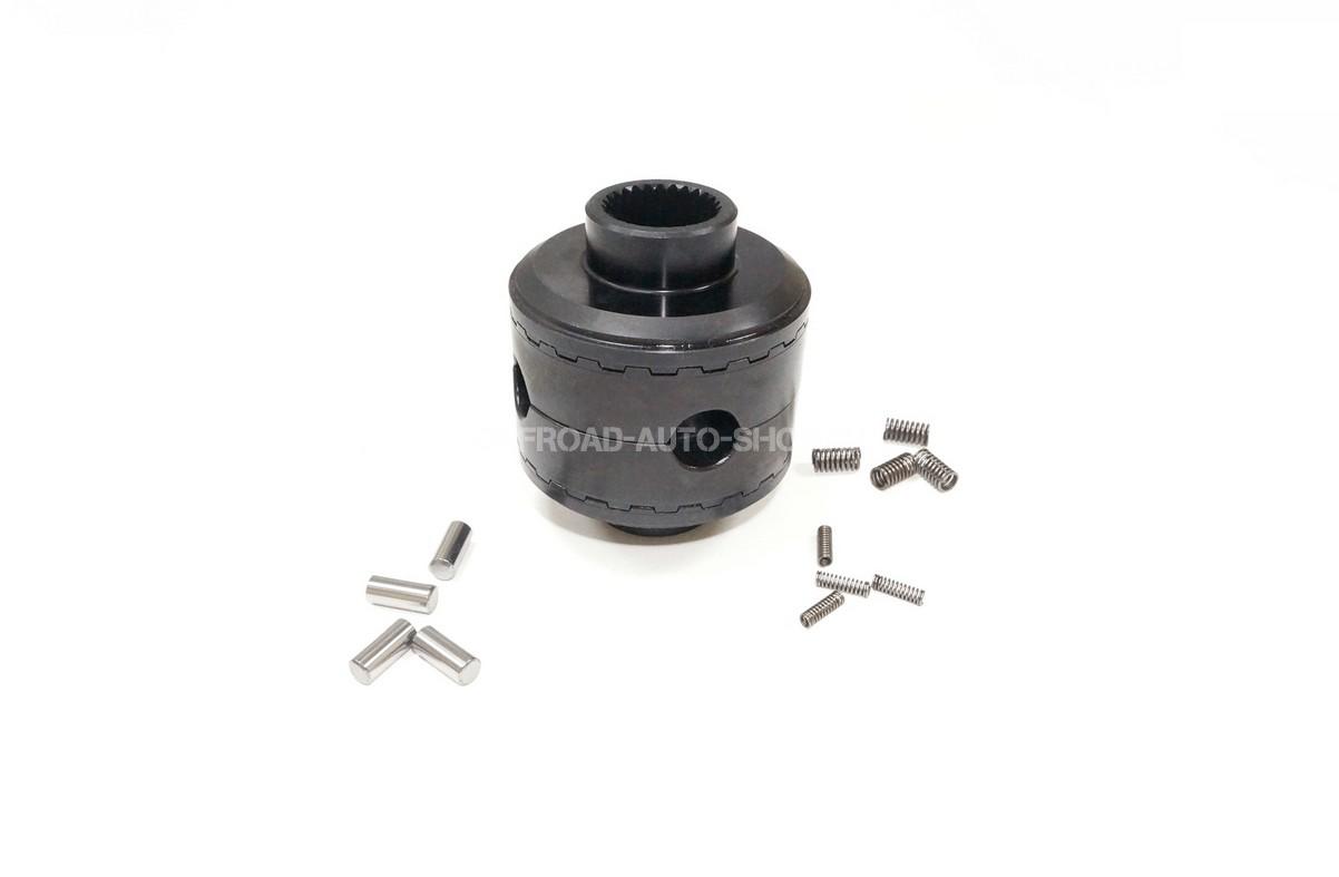 Конструкция блокировки достаточно проста и, как следствие, предельно надежна. Блокировка состоит из пары полуосевых и пары распорных муфт, пружинок, штифтов и шайб.