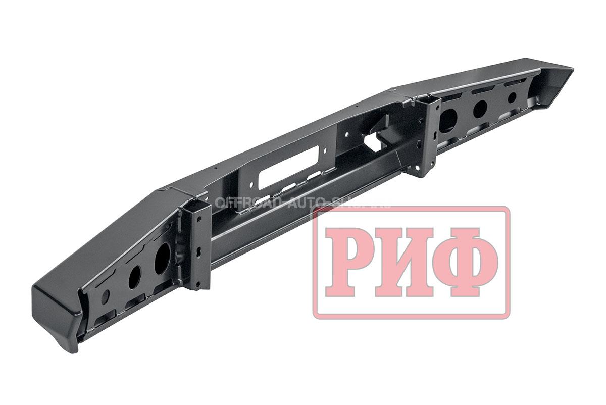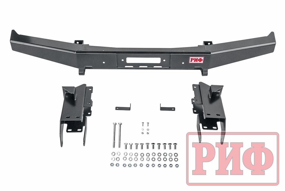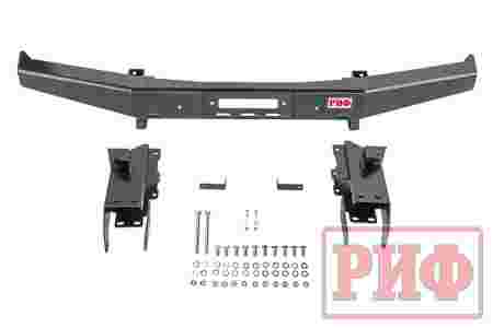 Бампер оснащен мощными упорами под реечный домкрат и буксирными проушинами для работы с рывковой или буксировочной стропой. Тщательно продуманная конструкция внутренних усилителей обеспечивают максимальную надежность бампера, стойкость к высоким нагрузкам и сильным ударам.
