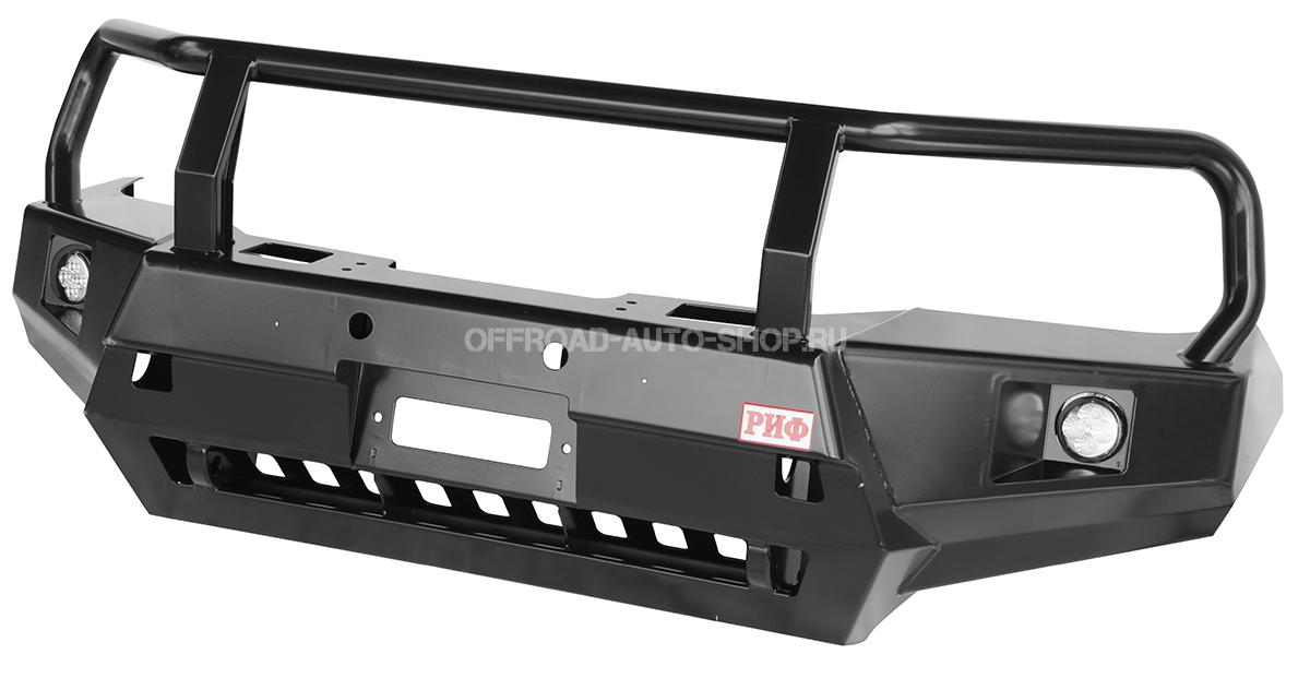 Бампер передний Toyota Hilux 2015+ с доп. фарами, защитной дугой и защитой бачка омывателя по выгодной цене в магазине Offroad-Auto-Shop.ru. Быстрая отгрузка в регионы. Доставка до терминала ТК бесплатно.