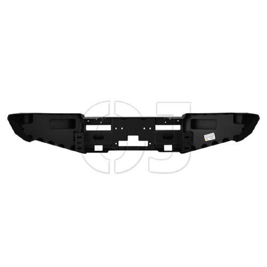 Передний силовой бампер OJ серии Трофи без дуг на Suzuki Jimny III с вертикальной площадкой лебёдки, нишами под дополнительные фары с заглушками, проёмами под упор реечного домкрата, буксирными проушинами. Данный бампер может быть укомплектован различным дополнительным оборудованием.