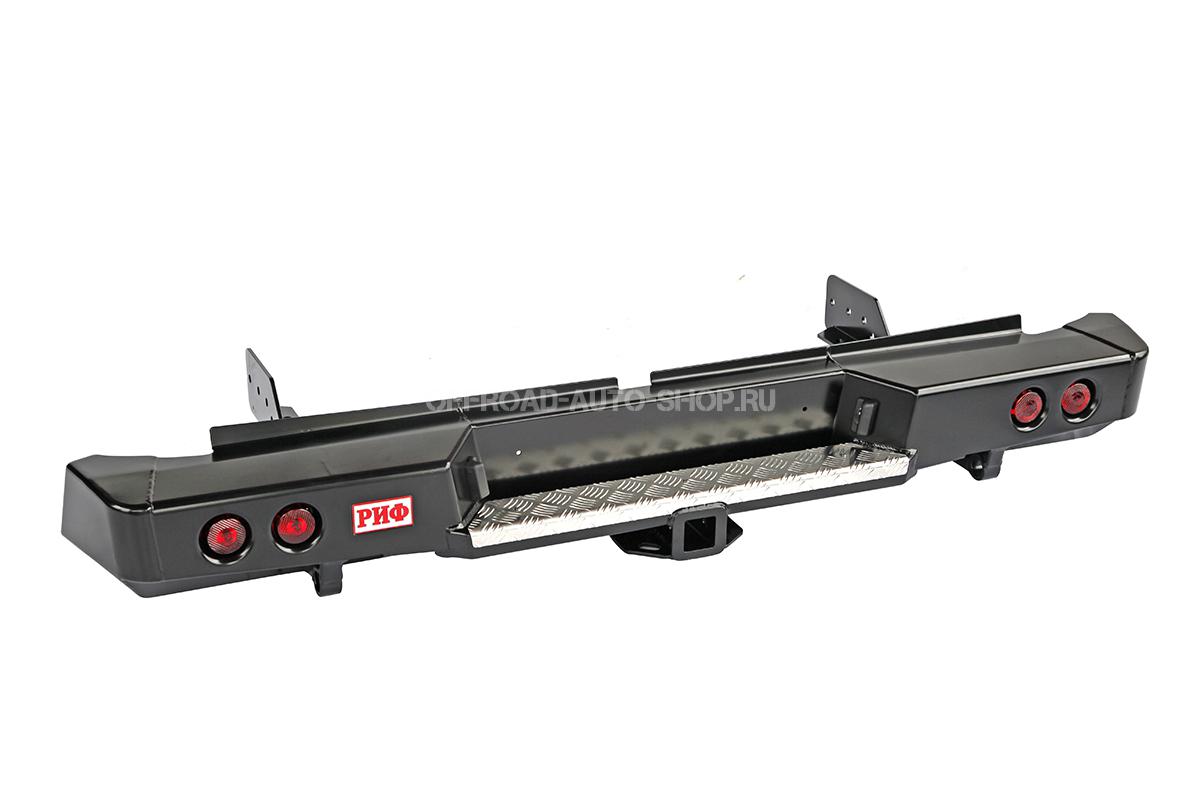 Задний силовой бампер надежно защитит кузов автомобиля на бездорожье или в городе в случае непредвиденных инцидентов. Бампер оборудован упорами под хай джек и буксирными проушинами для работы с рывковой или буксировочной стропой.