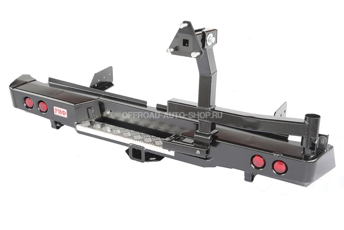 Задний силовой бампер надежно защитит кузов автомобиля на бездорожье или в городе в случае непредвиденных инцидентов. Бампер оборудован упорами под хай джек и буксирными проушинами для работы с рывковой или буксировочной стропой.