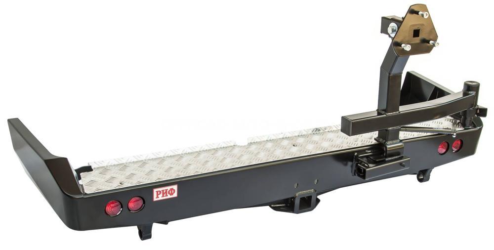 Задний силовой бампер надежно защитит кузов автомобиля на бездорожье или в городе в случае непредвиденных инцидентов. Бампер оборудован упорами под хай джек и буксирными проушинами для работы с рывковой или буксировочной стропой.