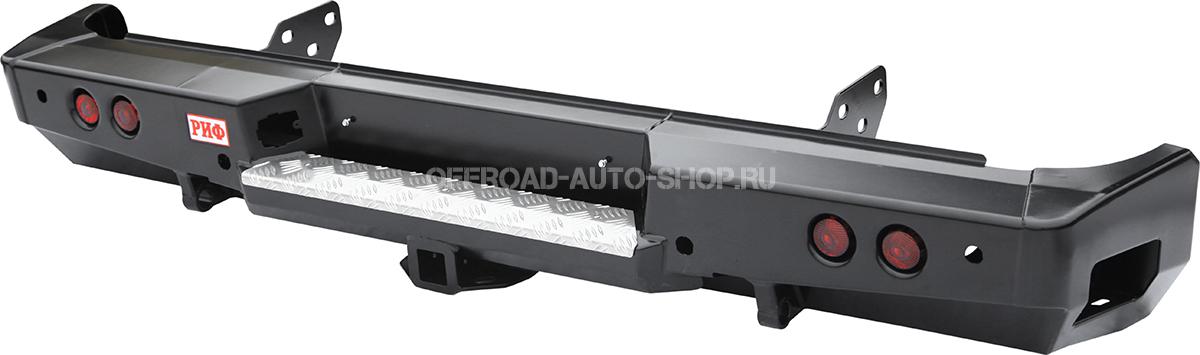 Задний силовой бампер надежно защитит кузов автомобиля на бездорожье или в городе в случае непредвиденных инцидентов. Бампер оборудован упорами под хай джек и буксирными проушинами для работы с рывковой или буксировочной стропой.