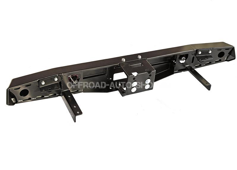 Задний силовой бампер надежно защитит кузов автомобиля на бездорожье или в городе в случае непредвиденных инцидентов. Бампер оборудован упорами под хай джек и буксирными проушинами для работы с рывковой или буксировочной стропой.