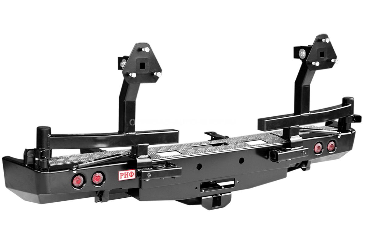 Бампер силовой задний ГАЗ Соболь с площадкой под лебёдку, квадратом под фаркоп, фонарями, 2-я калитками, подсветкой номера, лифт 50 мм