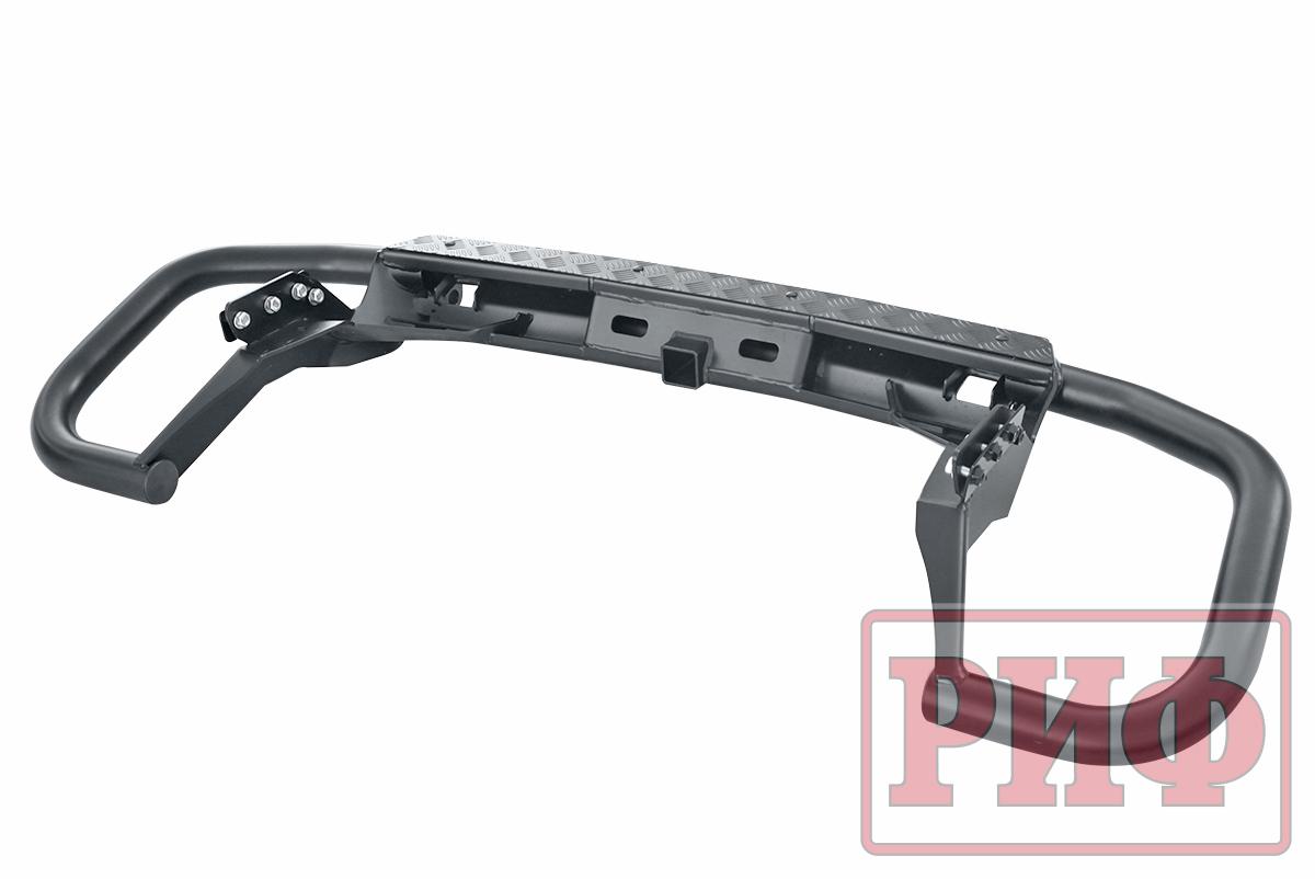 Задний силовой бампер надежно защитит кузов автомобиля на бездорожье или в городе в случае непредвиденных инцидентов. Бампер оборудован упорами под хай джек и буксирными проушинами для работы с рывковой или буксировочной стропой.