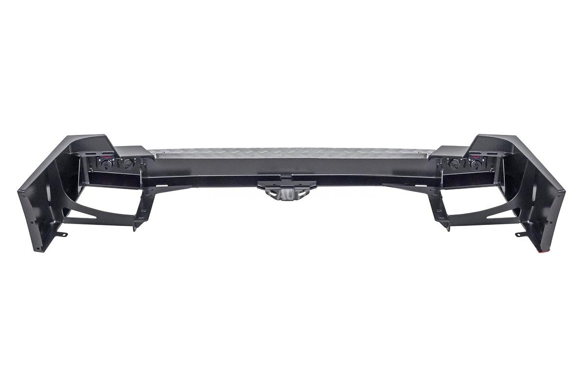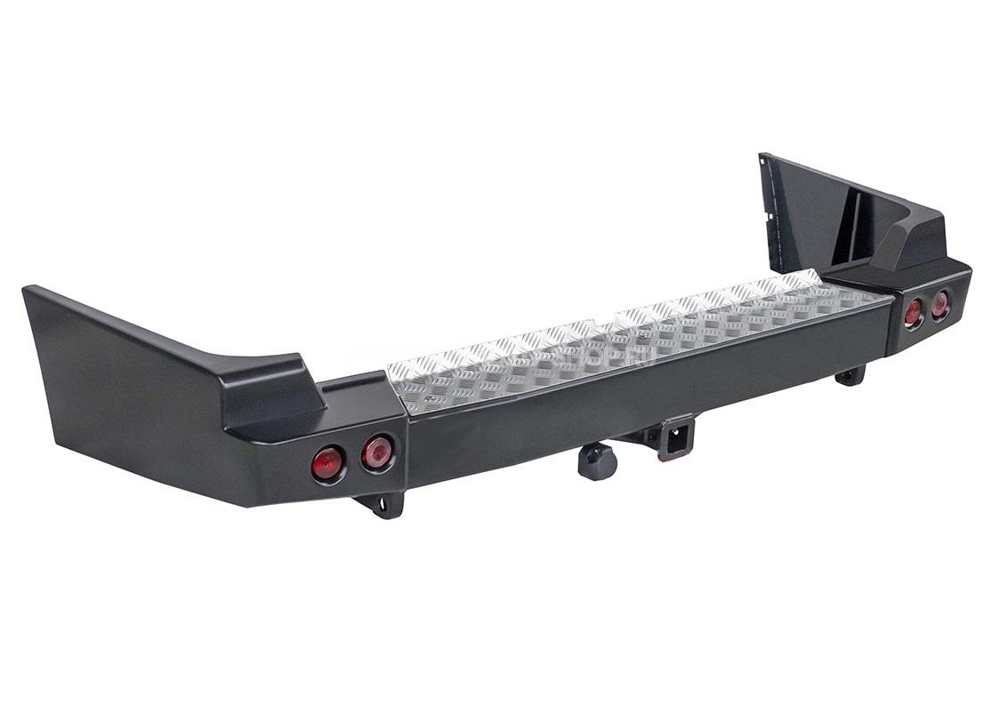 Задний силовой бампер надежно защитит кузов автомобиля на бездорожье или в городе в случае непредвиденных инцидентов. Бампер оборудован упорами под хай джек и буксирными проушинами для работы с рывковой или буксировочной стропой.