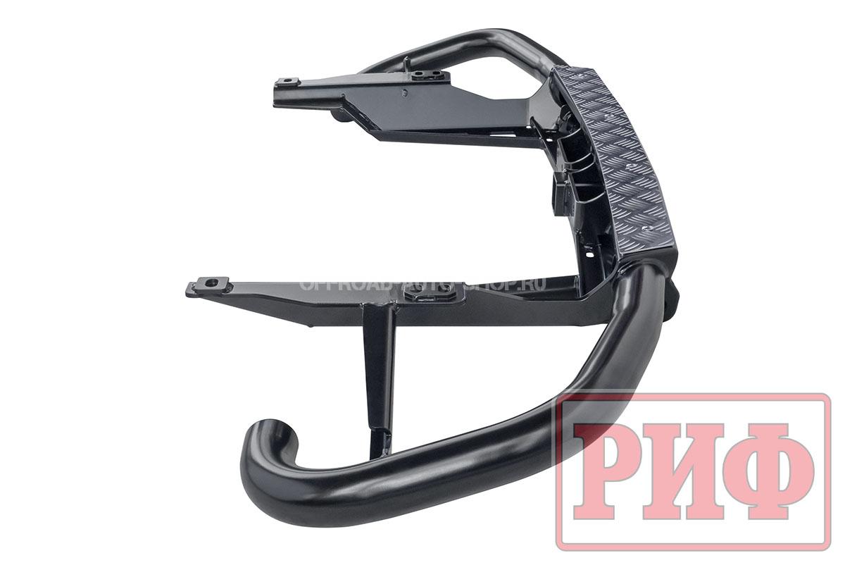 Черное порошковое покрытие защищает от коррозии в любых условиях эксплуатации и не боится самых агрессивных реагентов. При желании можно заказать бампер без покрытия и окрасить его в цвет автомобиля.