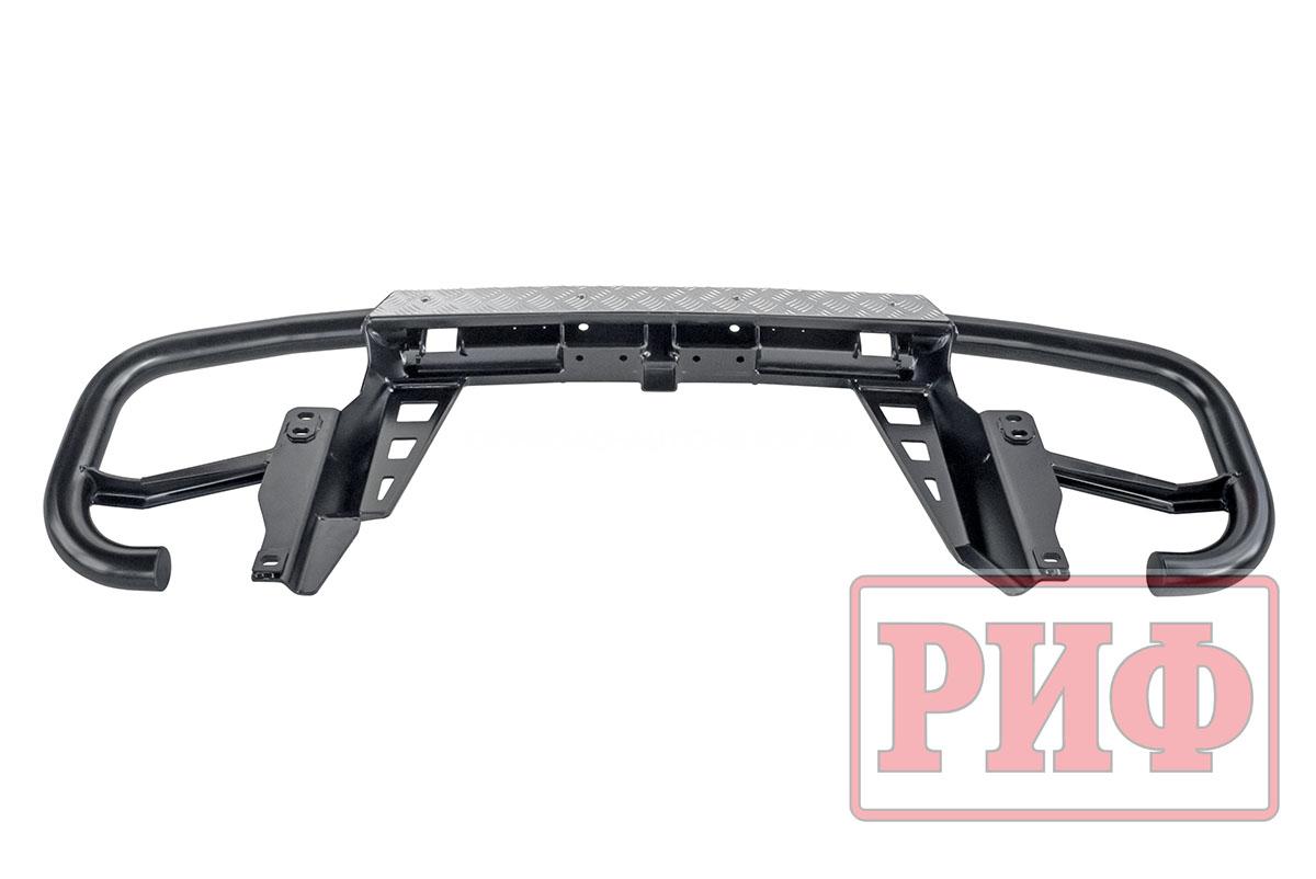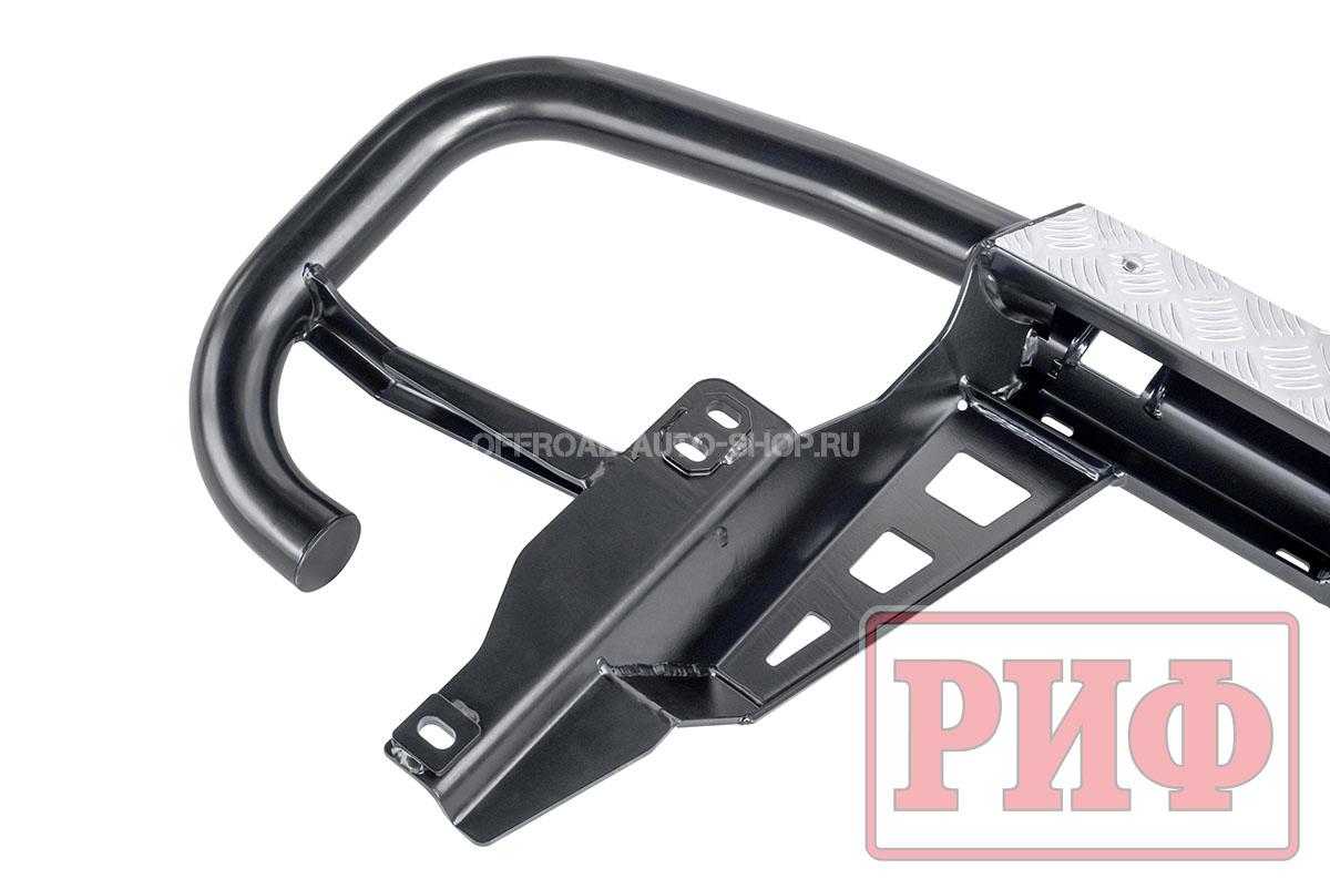 Задний силовой бампер надежно защитит кузов автомобиля на бездорожье или в городе в случае непредвиденных инцидентов. Бампер оборудован упорами под хай джек и буксирными проушинами для работы с рывковой или буксировочной стропой.