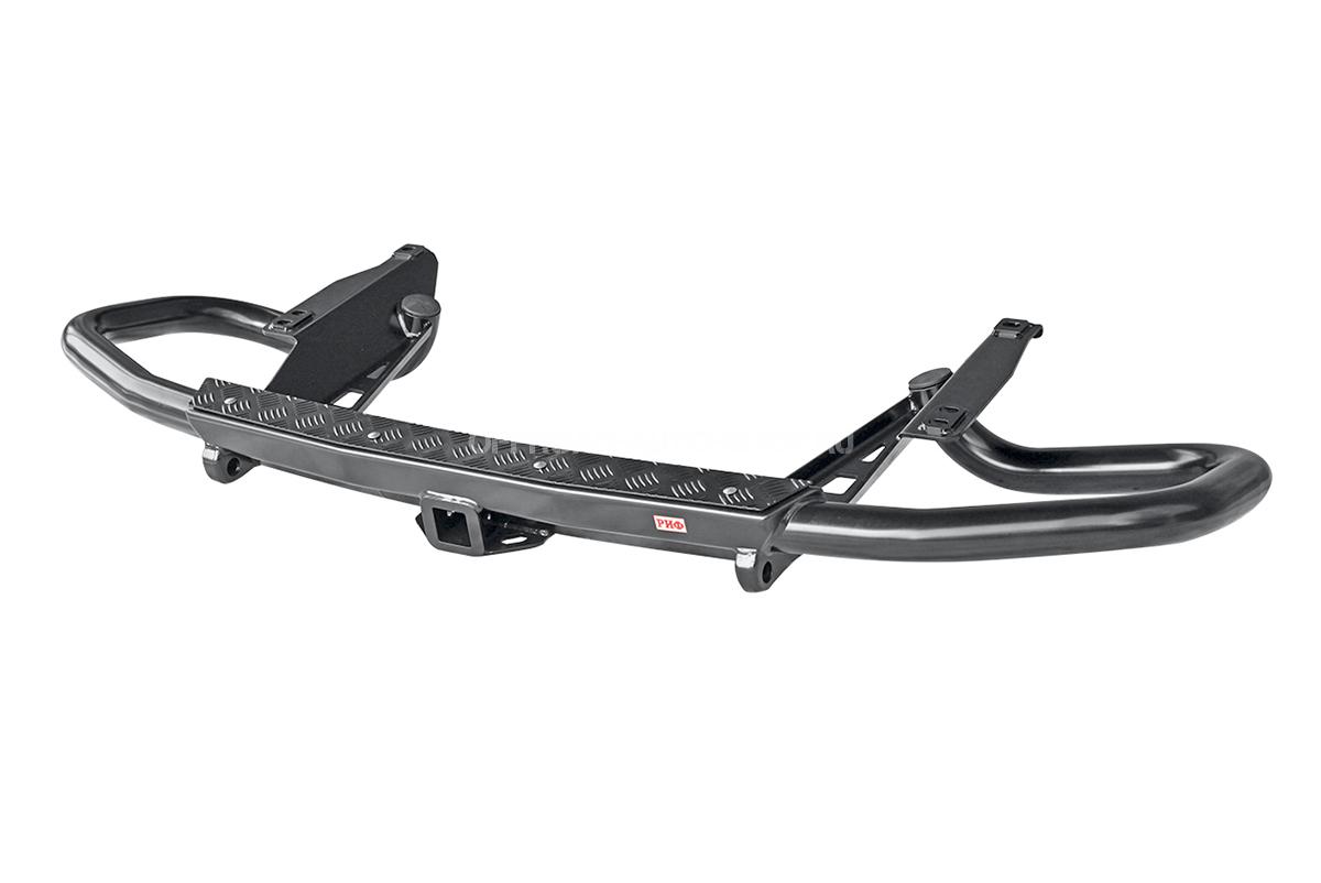 Встроенный американский 'квадрат' позволяет использовать любые съемные фаркопы, переходники, буксировочные устройства или съемные площадки для лебедки.
