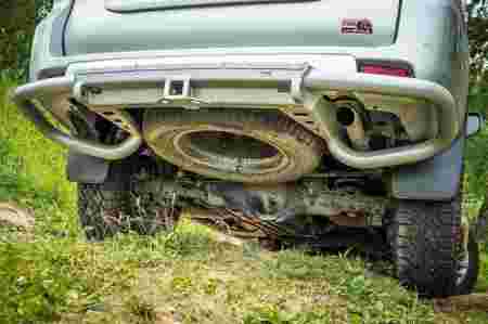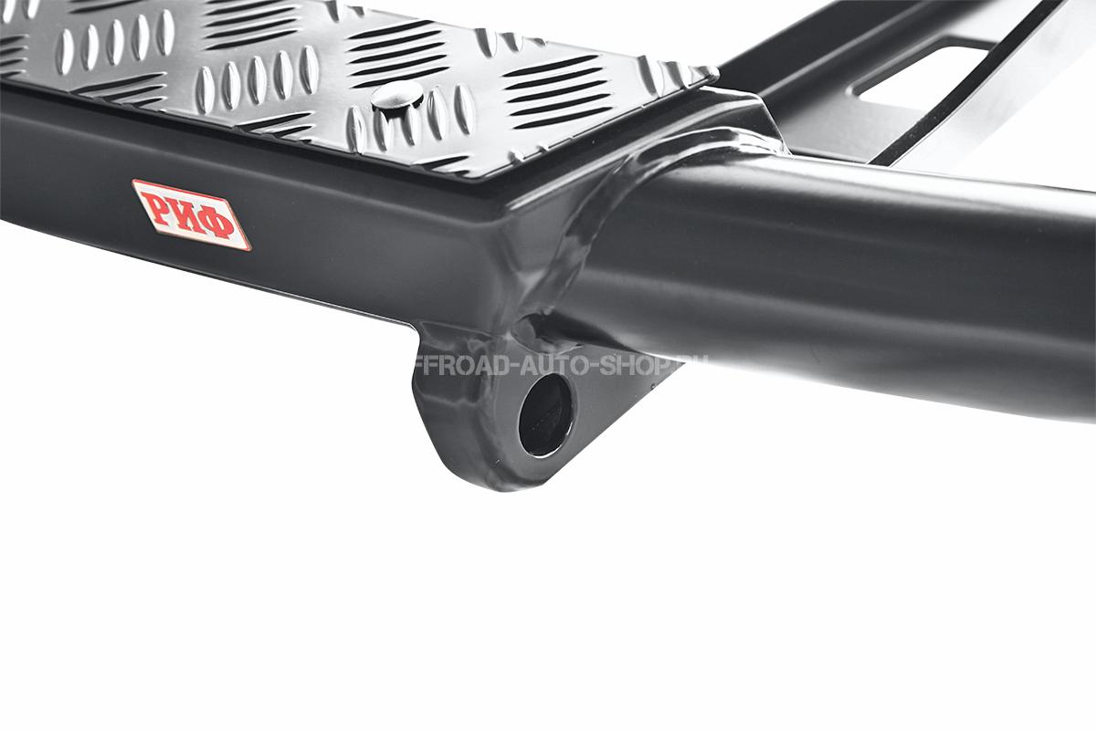 Задний силовой бампер надежно защитит кузов автомобиля на бездорожье или в городе в случае непредвиденных инцидентов. Бампер оборудован упорами под хай джек и буксирными проушинами для работы с рывковой или буксировочной стропой.