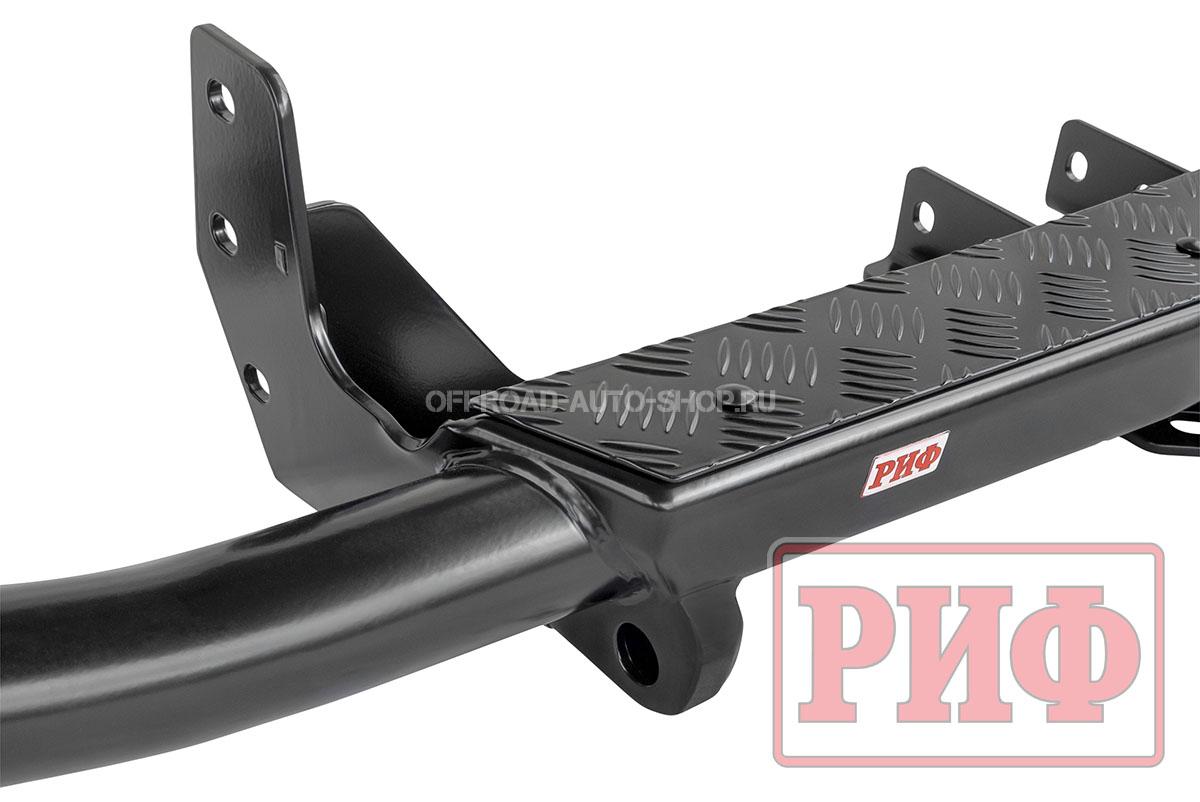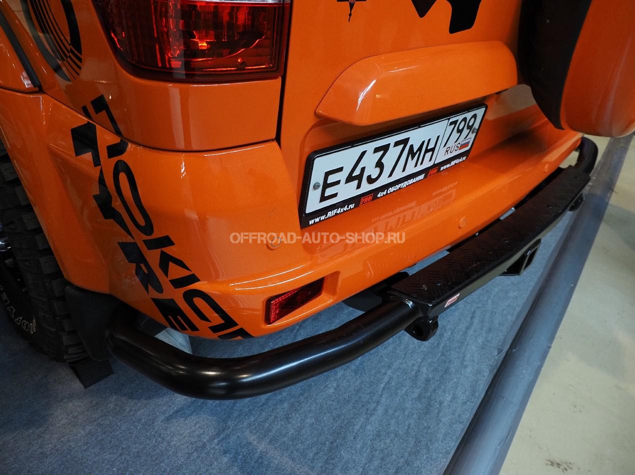 Задний силовой бампер надежно защитит кузов автомобиля на бездорожье или в городе в случае непредвиденных инцидентов. Бампер оборудован упорами под хай джек и буксирными проушинами для работы с рывковой или буксировочной стропой.