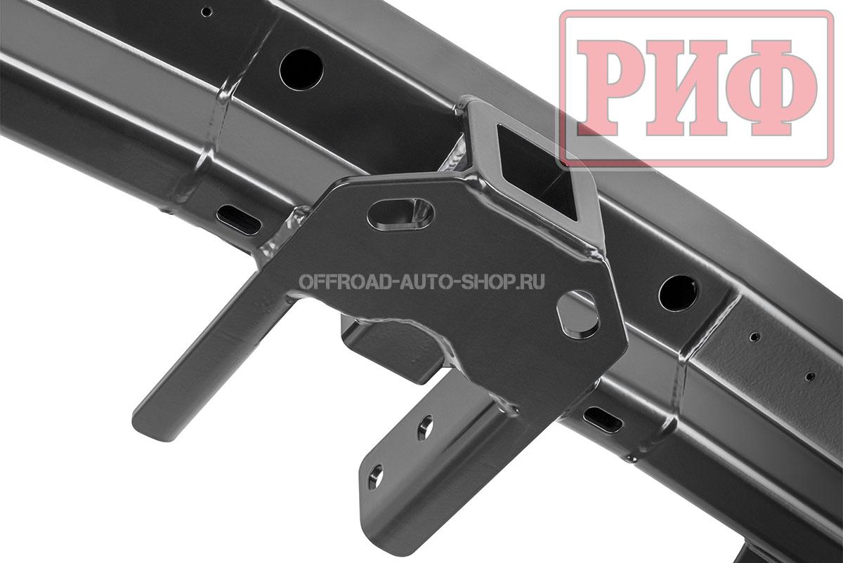 Встроенный американский 'квадрат' позволяет использовать любые съемные фаркопы, переходники, буксировочные устройства или съемные площадки для лебедки.