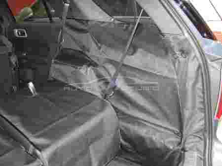В отличии от коврика в багажник, чехол защищает не только пол багажного отделения, но и боковые стенки, спинки задних сидений и задний бампер автомобиля.