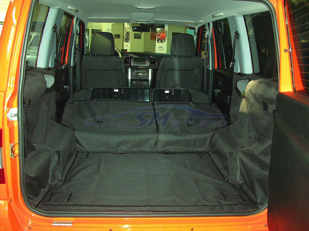 В отличии от коврика в багажник, чехол защищает не только пол багажного отделения, но и боковые стенки, спинки задних сидений и задний бампер автомобиля.
