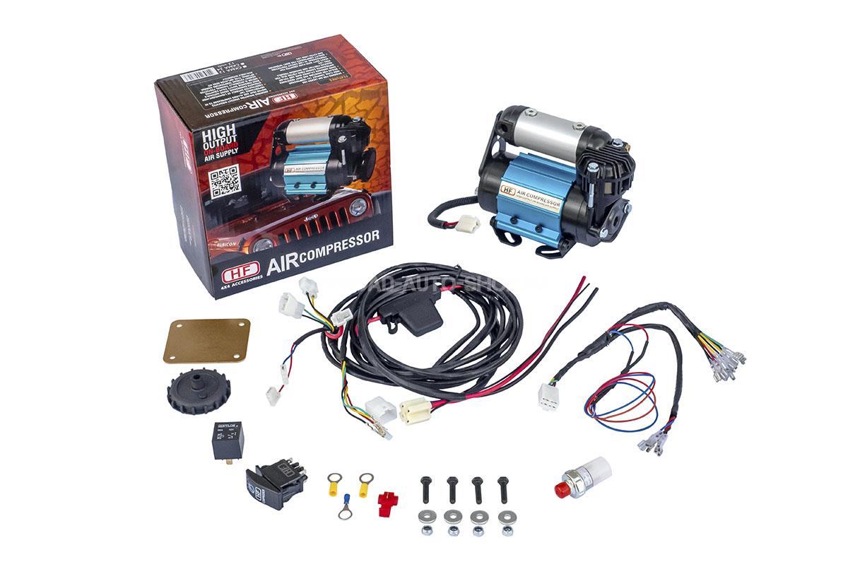 Высокопроизводительный бортовой компрессор CKMA12 специально разработан для включения пневматических блокировок дифференциала HF и предназначен для эксплуатации в экстремальных условиях. Кроме этого, данный компрессор можно использовать для подкачки шин автомобиля и другого оборудования с помощью дополнительного воздушного шланга и насадки приобретается отдельно. Дизайн и конструкция компрессора разработана специально для установки и подключения внутри кузова внедорожника место установки выбирается исходя из требований безопасности эксплуатации автомобиля и дополнительного оборудования.