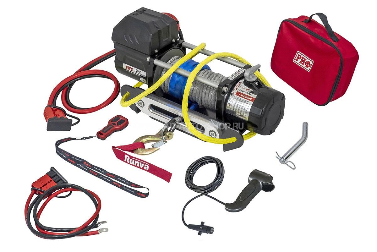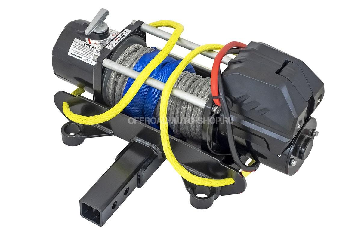 Лебёдка переносная 9000SR c квадратом для фаркопа и проводами в сборе, синтетический трос (облегченная)