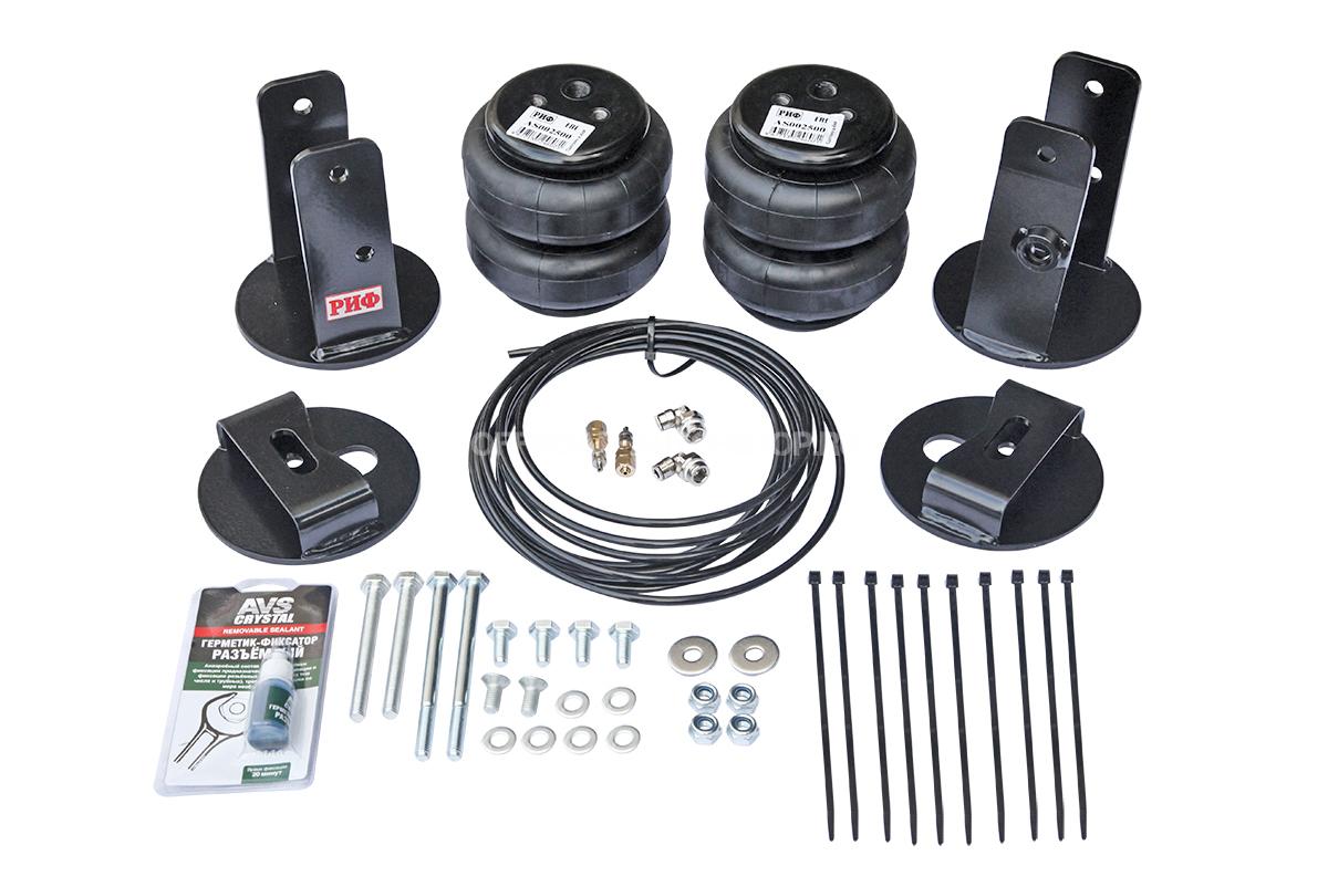 Комплект пневмоподвески устанавливается в дополнение к штатной подвеске автомобиля и позволяет снизить нагрузку на рессоры и использовать полную грузоподъёмность автомобиля без изменения геометрической проходимости.