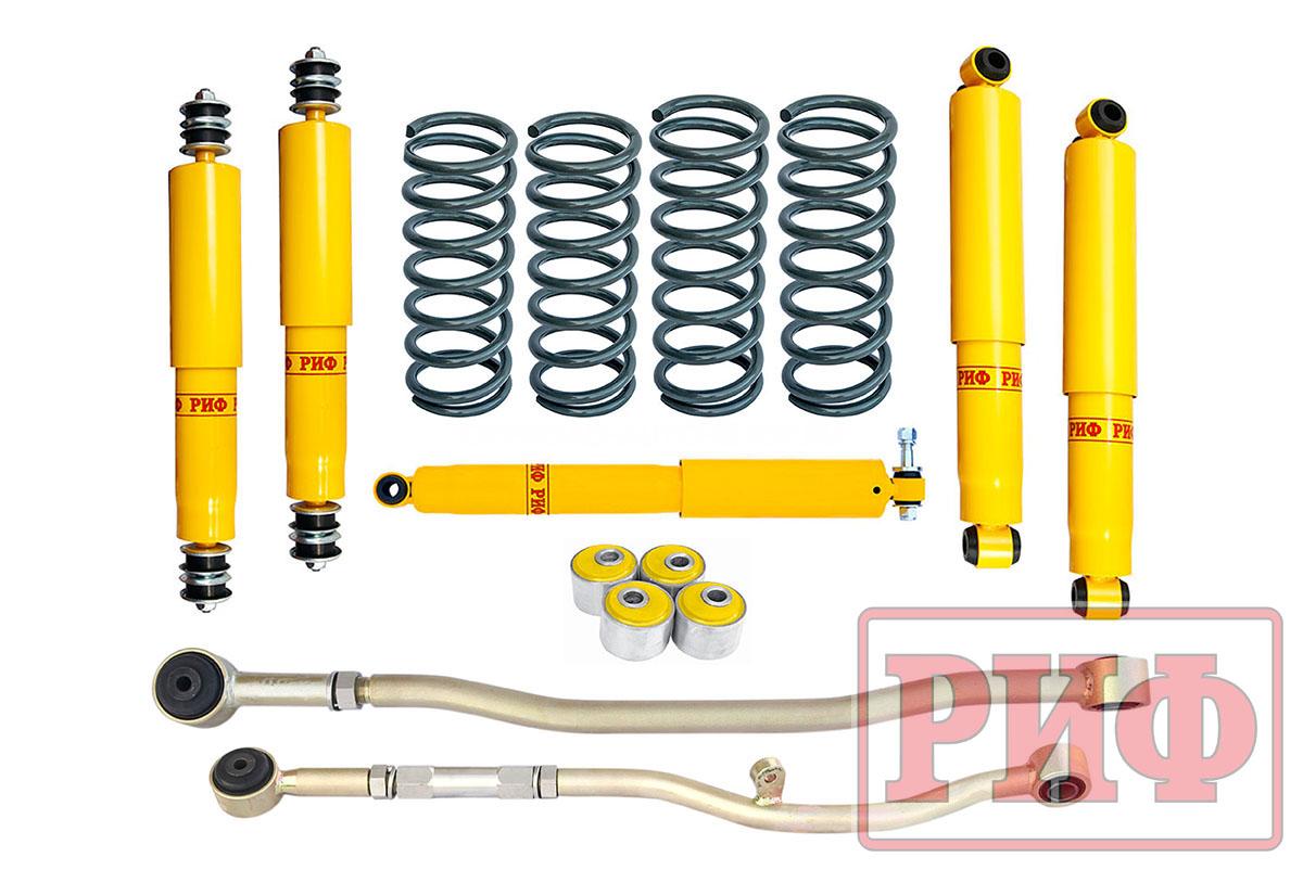 Все компоненты лифт-комплектов разработаны специально для эксплуатации внедорожника в тяжелых условиях на различных дорожных покрытиях. Рессоры, амортизаторы с технологией Foam Cell и пружины не только компенсируют вес установленного на внедорожнике дополнительного оборудования (бамперов, порогов, дополнительных топливных баков, лебедок и прочего), но также существенно повышают грузоподъемность автомобиля. Удлиненные стремянки и серьги произведены из высококачественных материалов и имеют увеличенный запас прочности. Рессорные втулки изготовлены из полиуретана обладает высокой упругостью, износостойкостью и термоустойчивостью к высоким или низким температурам.