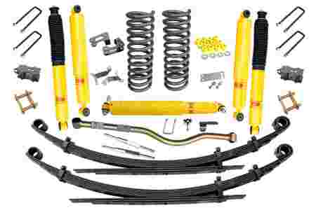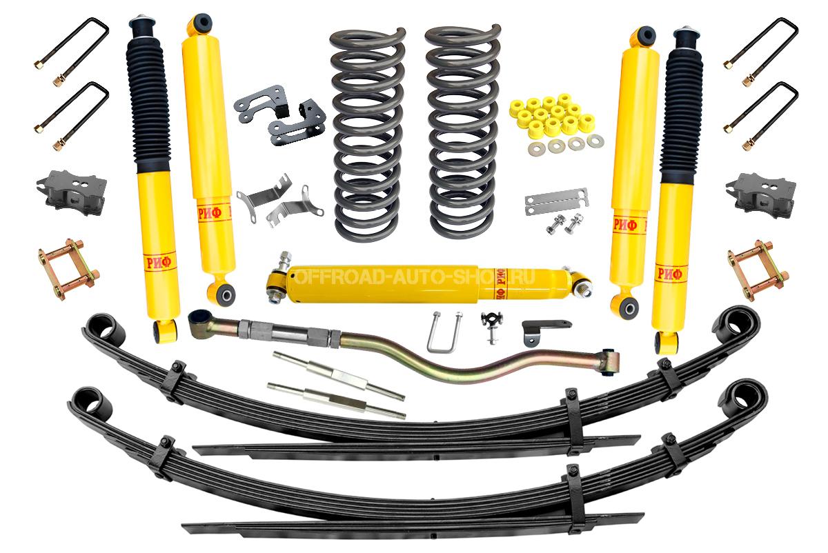 Все компоненты лифт-комплектов разработаны специально для эксплуатации внедорожника в тяжелых условиях на различных дорожных покрытиях. Рессоры, амортизаторы с технологией R-AIR и пружины не только компенсируют вес установленного на внедорожнике дополнительного оборудования (бамперов, порогов, дополнительных топливных баков, лебедок и прочего), но также существенно повышают грузоподъемность автомобиля. Удлиненные стремянки и серьги произведены из высококачественных материалов и имеют увеличенный запас прочности. Рессорные втулки изготовлены из полиуретана обладает высокой упругостью, износостойкостью и термоустойчивостью к высоким или низким температурам.