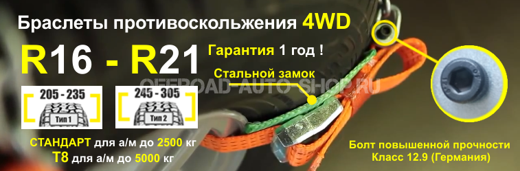 Браслет противоскольжения 4WD R16-R21 для шин 245-305 мм по выгодной цене в магазине Offroad-Auto-Shop.ru. Быстрая отгрузка в регионы. Доставка до терминала ТК бесплатно.