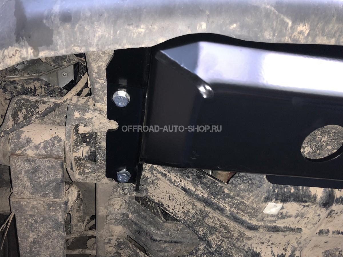 В комплект к защите радиатора рекомендуется приобрести защиту рулевых тяг и картера и, таким образом, полностью закрыть жизненно важные, но уязвимые детали автомобиля. Толщина металла защиты радиатора 4 мм.